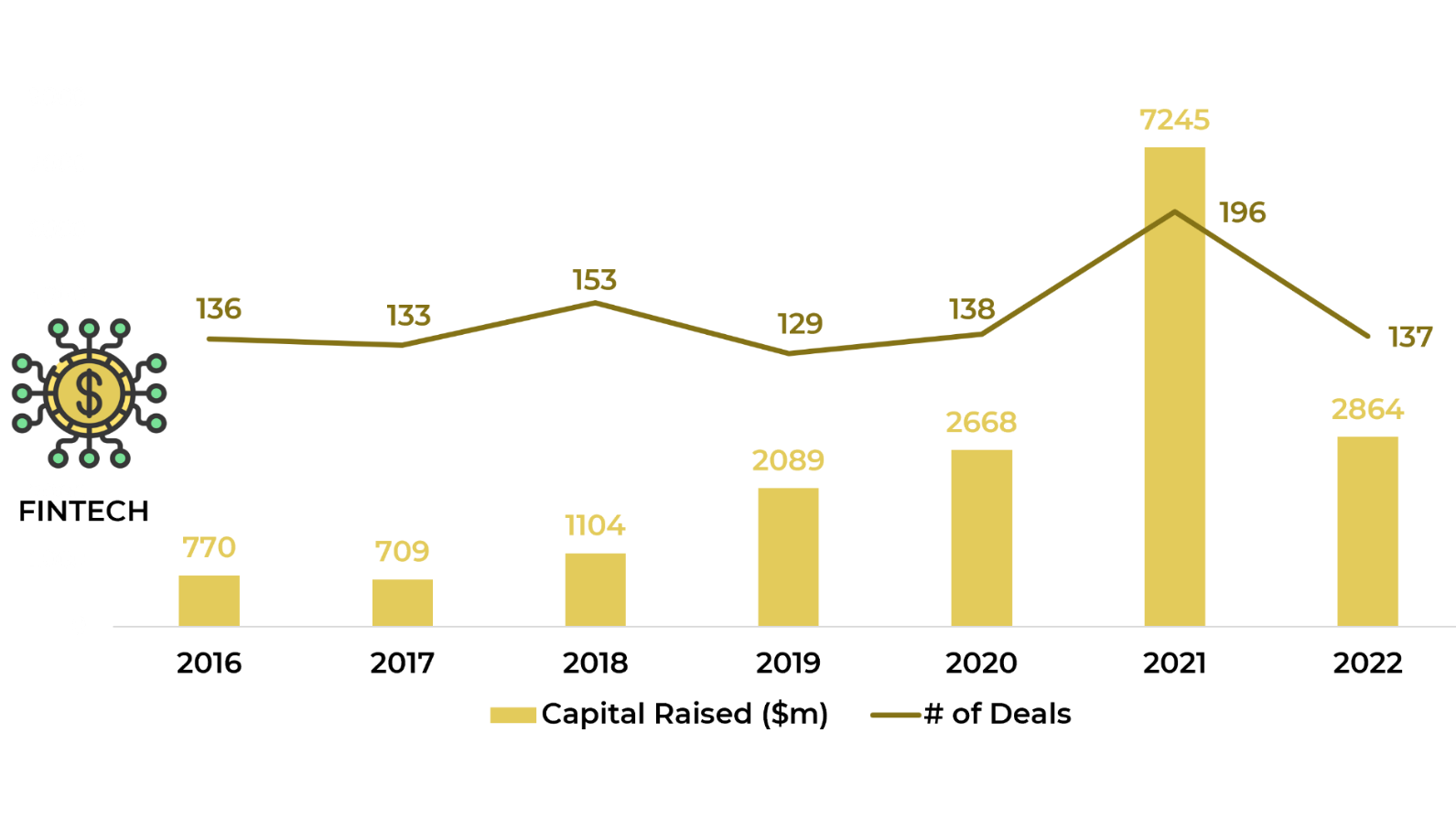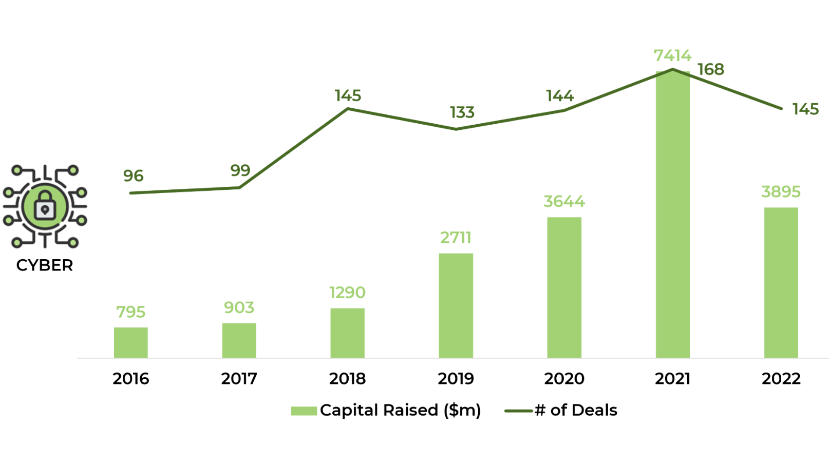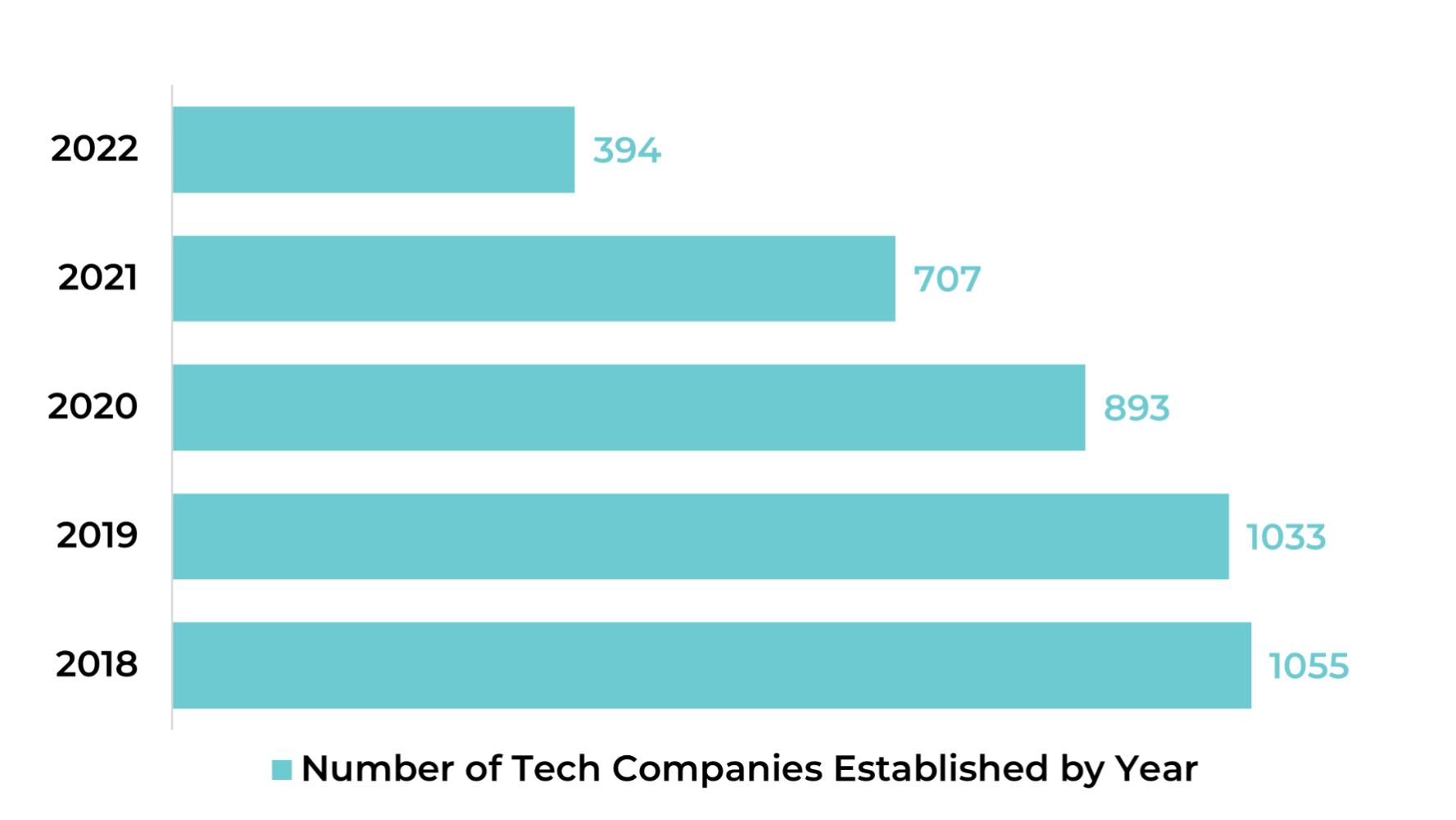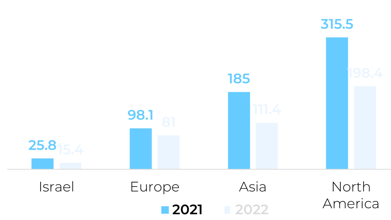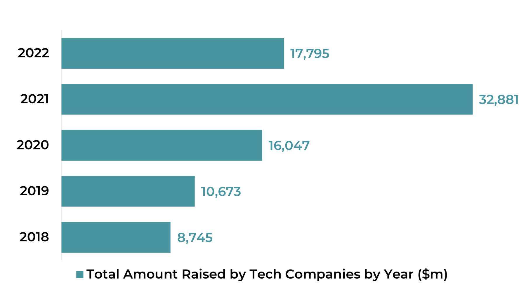 looking at Israeli tech investments between 2018-2022, There is a significant increase in the amount of money raised by the companies with a peak marked by 2021, after which 2022 shows a decrease.